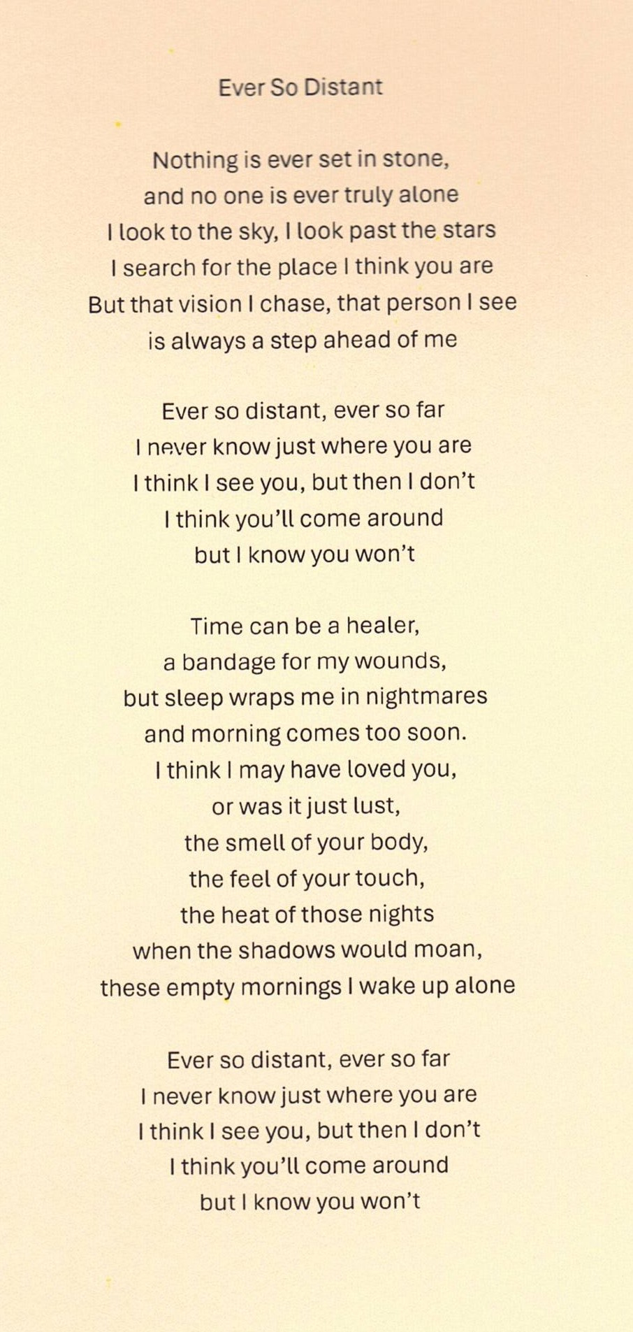 What a mix of competing emotion - longing against acceptance, stars and bodies.. this is exquisite-and painful..