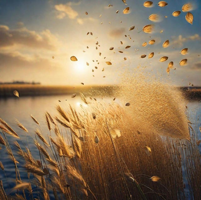 We are seeds, we are seeds, Weeping willow, hollow reeds Let us rise, let us be Let the wind set us free Hear us call, hear us call, Let the wind take us all We are tinder, we are spark We are cinders in the dark. We are fuel fed to flame. Let the fire spread our name Hear us call, hear us call Let the fire take us all We are currents, we are streams A waterfall within a dream. We are waves, an ocean’s roar, flowing water, endless shore. Hear us call, hear us call Let the water take us all We are voices floating free. We are ash and memory. We are moments locked in time. We are poems speaking rhymes. Hear us fall, hear us fall Let the Earth take us all