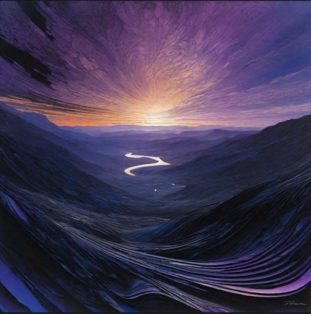 The day grows out of itself in stages like a snake shedding skin, inky blue-black sky against a scarcely visible horizon beginning to peel itself back in layers, becoming ever lighter and more translucent until the first thin streaks of sunlight filter through the pale violet haze of sunrise.